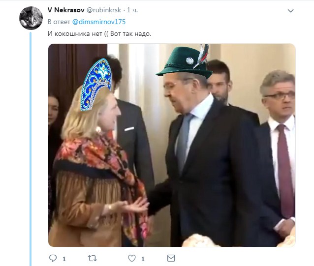 В свою очередь комментаторы усомнились в том, что платок на дипломате действительно "русский", а также принялись "переодевать" ее и Лаврова.