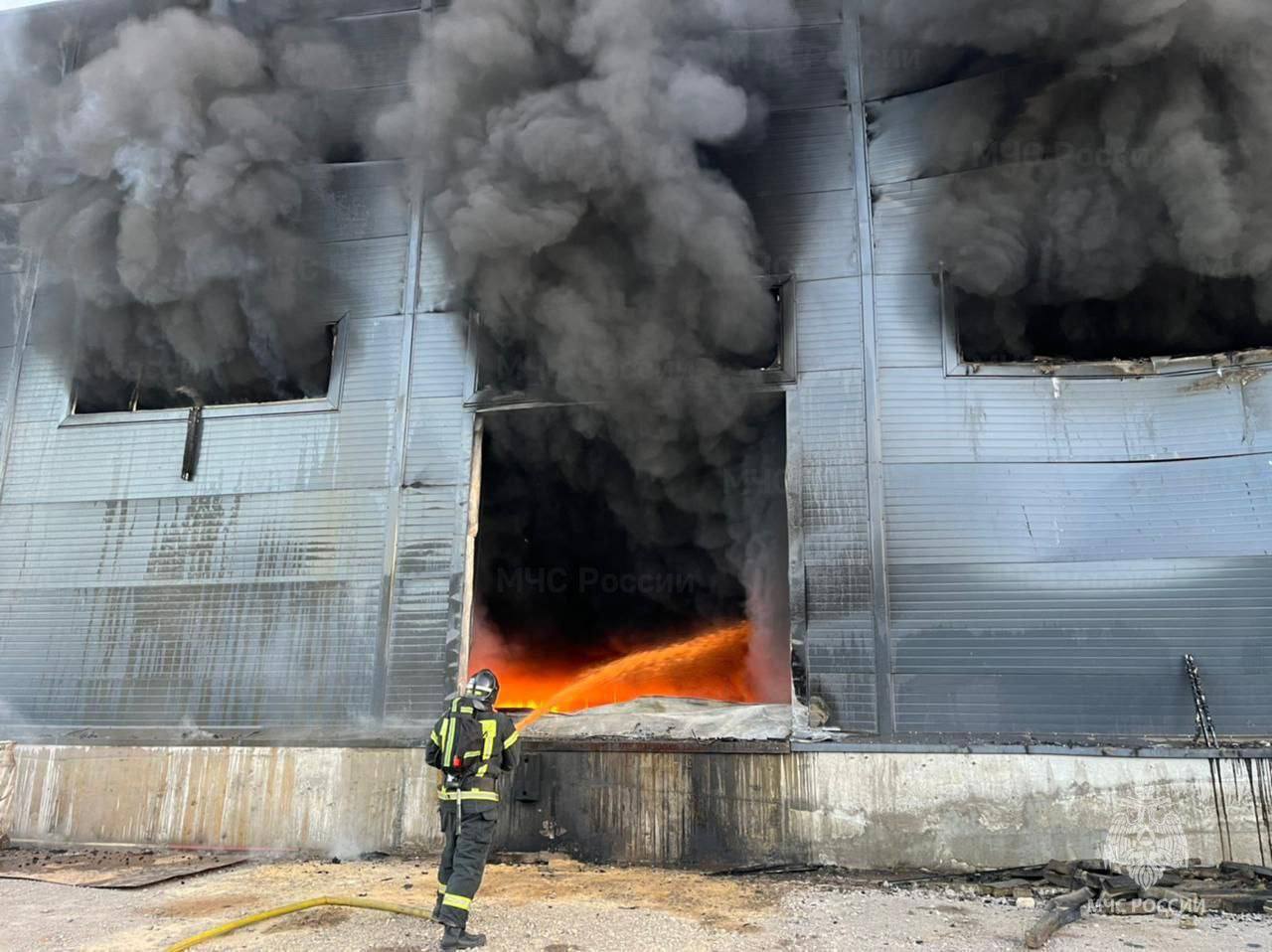 Площадь пожара существенно увеличилась, ведь тушение усложняет высокая пожарная загрузка здания, внутри находятся бочки с моторным маслом.