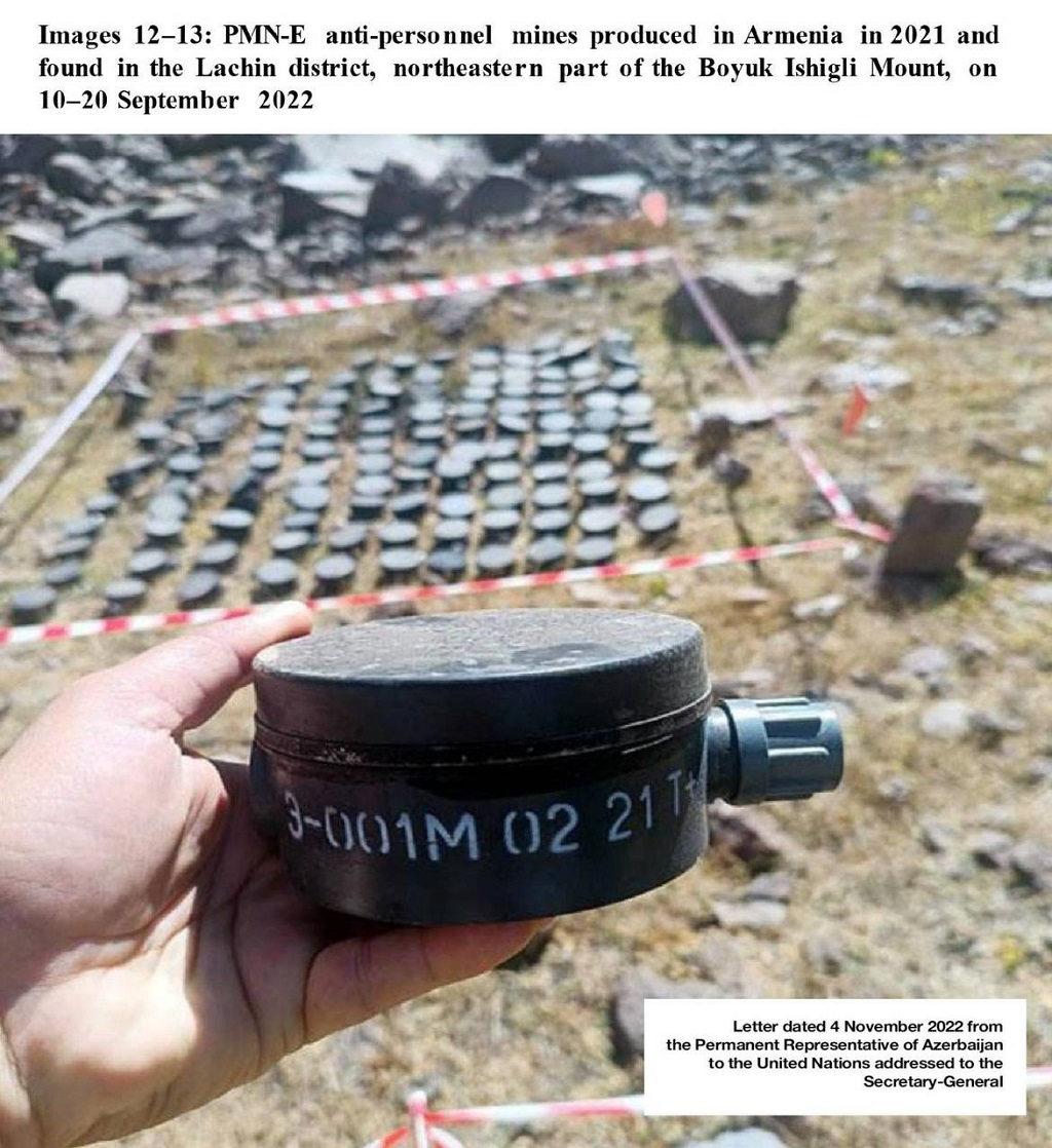 Азербайджан осенью 2020 сумел взять под контроль основную часть суверенной территории, но заявляет, что армянская сторона под прикрытием военного контингента РФ продолжает минировать земли. В августе-ноябре прошлого года почти 3000 мин было обнаружено в Лачинском, Кельбаджарском и Шушинском районах Карабаха. Большинство, по сведениям экспертов из Азербайджана, имели маркировку 2021 года и были произведены в Армении.