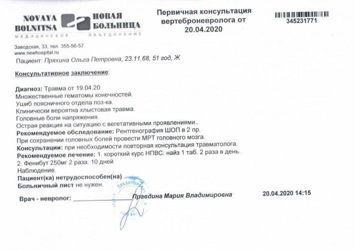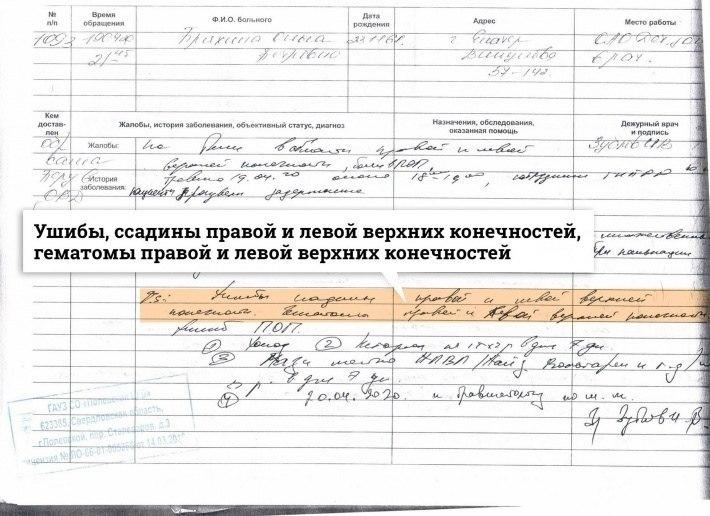Пряхина зафиксировала ушибы и гематомы в травмпункте.