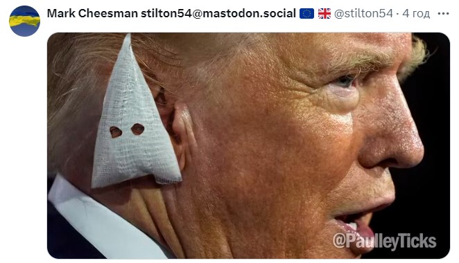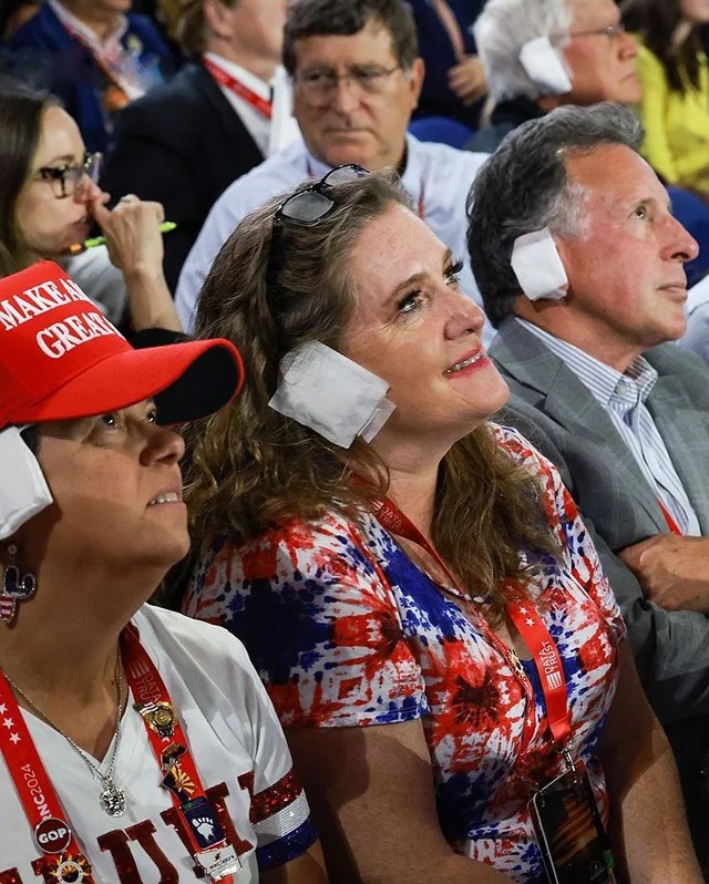В США сторонники Дональда Трампа, которому во время покушения подстрелили ухо, в знак поддержки политика накладывают себе на уши наклейки.