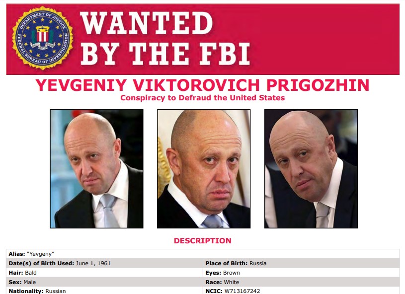 Также отмечают, что Евгений Викторович Пригожин разыскивается ФБР по обвинению в причастности к заговору с целью обмана США путем препятствования и нарушения законных функций Федеральной избирательной комиссии, Министерства юстиции США и Государственного департамента США. Это произошло в Вашингтоне, округ Колумбия, с начала 2014 года по 16 февраля 2018 года.