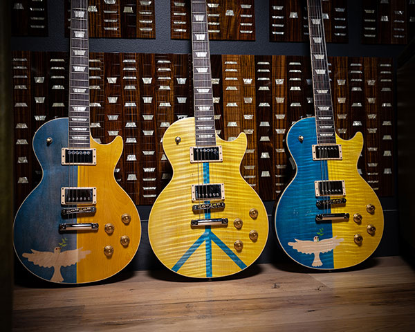 Гитары, созданные Gibson окрасили в цвет флага Украины и нанесли различные рисунки. Так, музыкальные инструменты украсили белые голубки с оливковыми ветвями, символ мира и автографы музыкантов. Также на аукционе продавались книги с автографами.