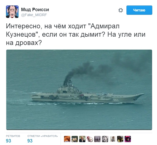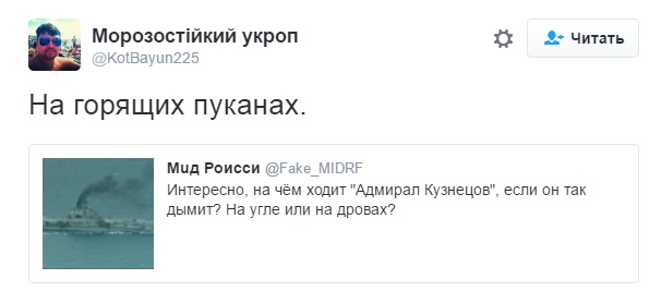 "Интересно, на чем ходит "Адмирал Кузнецов", если он так дымит? На угле или на дровах?" - отметили в соцсети.