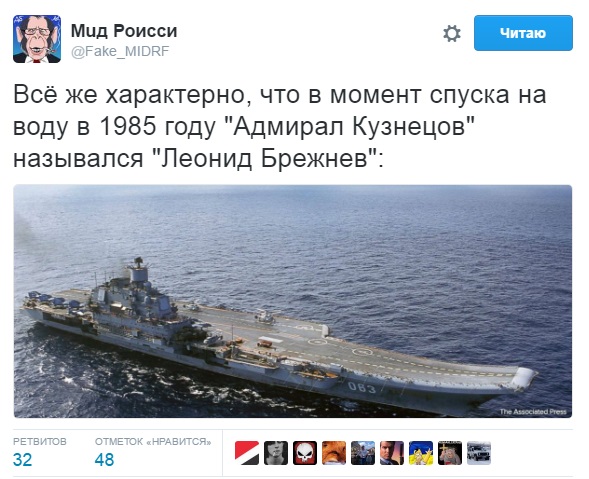 Как сообщал "Апостроф", в сети в сентябре высмеяли идею отправки Россией в восточную часть Средиземного моря своего единственного крейсера-авианосца "Адмирал Кузнецов". На борту крейсера базируются истребители Су-27К.