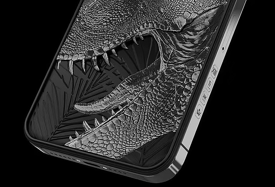"Уникальный iPhone 13 Pro Tyrannophone украшен трехмерным изображением головы динозавра, который вселяет страх в сердца ваших конкурентов взглядом желтого глаза, сделанного из чистого янтаря", - говорят разработчики премиального iPhone.