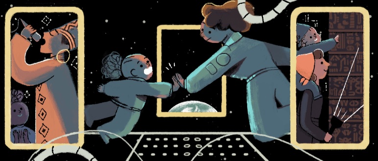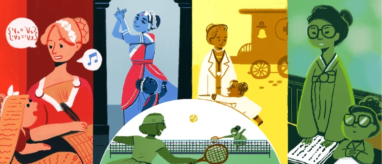 Данный дудл представляет собой подбор картинок, которые демонстрируют, что женщина может все: и ремонт сделать, и за штурвал самолета сесть, и ребенка воспитать, и в космос полететь.
