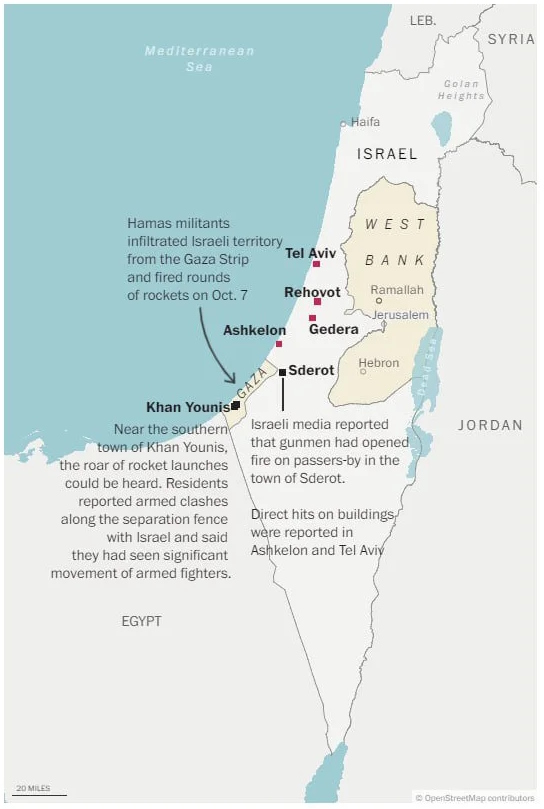 Куда ударили и прорвались в Израиле боевики ХАМАС: карты