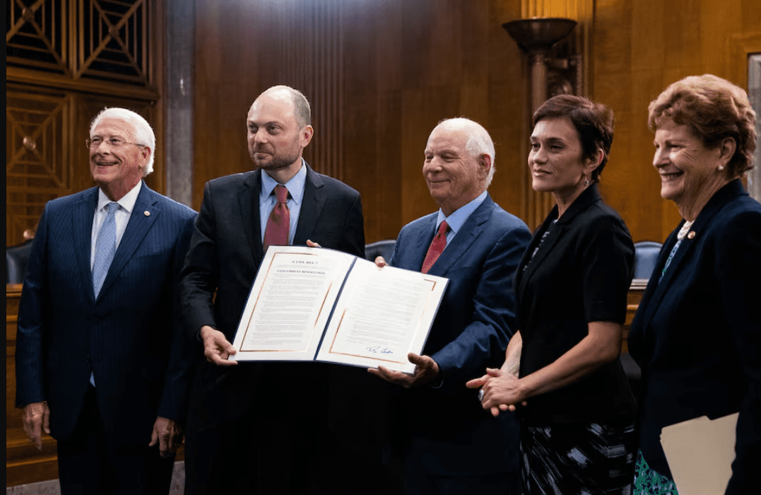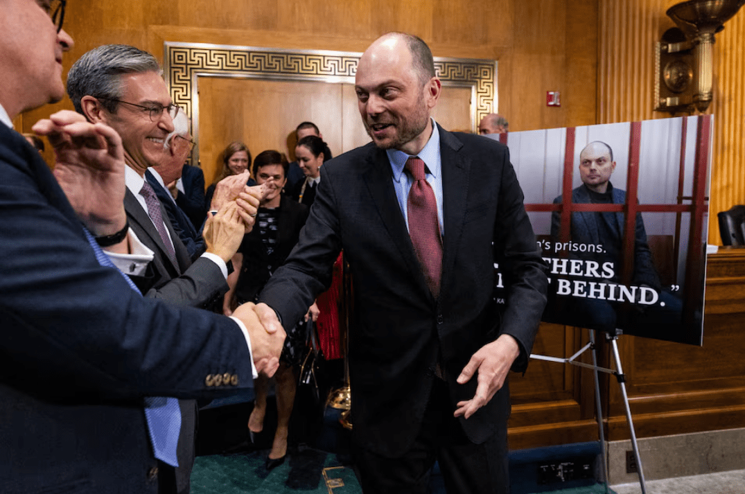 Российский оппозиционер и бывший политзаключенный Владимир Кара-Мурза выступил в зале заседаний Сената США ау вторник, 17 сентября.