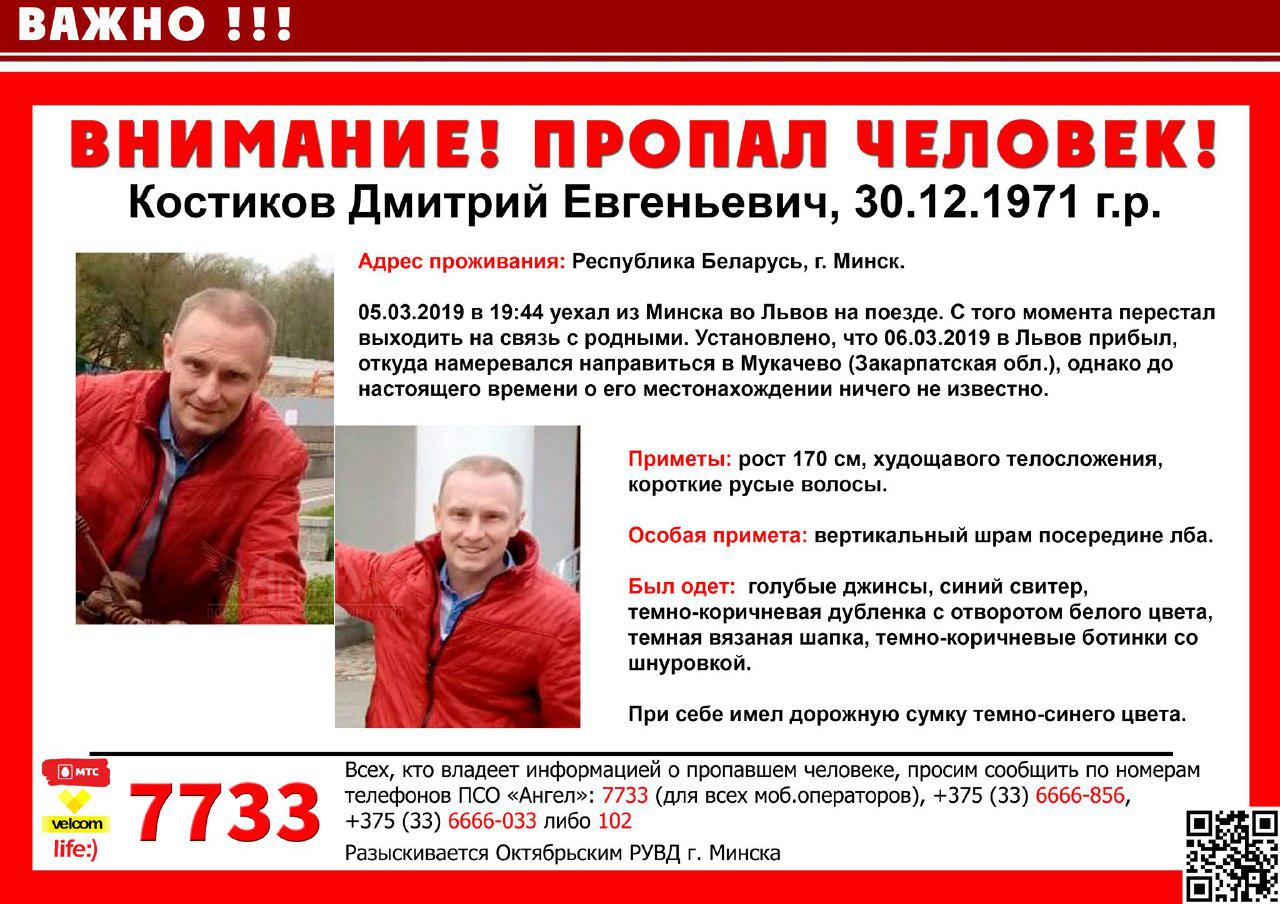 Сотрудник Минобороны Беларуси Дмитрий Костиков, тело которого было найдено на украинско-румынской границе после крушения вертолета Ка-26, был замечен 5 марта в поезде Минск-Львов.