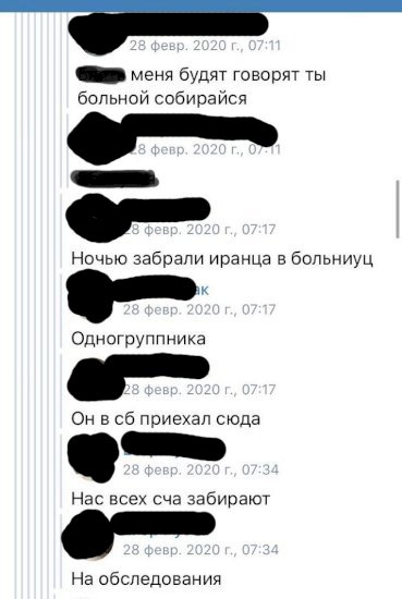 В госпиталь инвалидов ВОВ попали все, кто жил с иранцем в одной квартире. Его одногруппники рассказали, что ближе к утру 28 февраля их разбудили врачи - их также отвезли в госпиталь, чтобы сдать анализы.