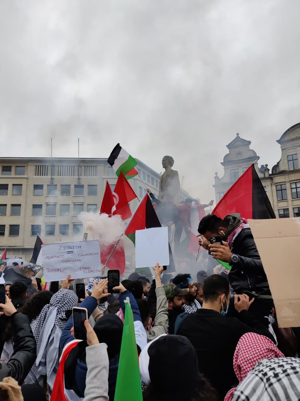 По данным журналистов, в ходе протестов митингующие поддержали Палестину и публично рвали государственные флаги Израиля.
