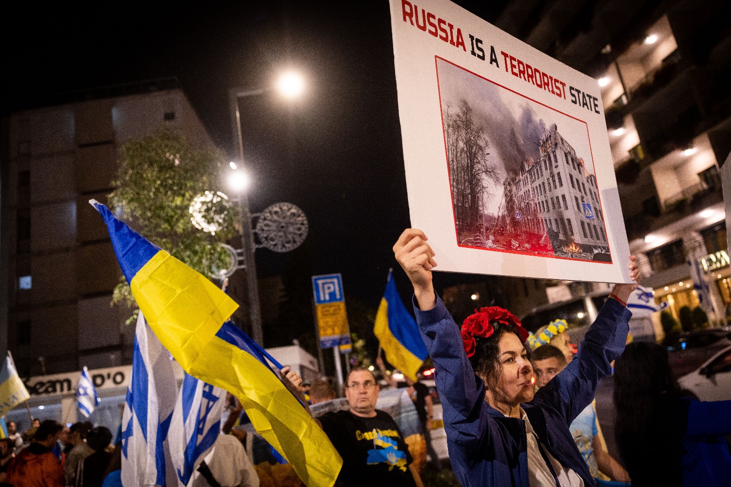 В Тель-Авиве, в Израиле, у театра Габима, на акции в поддержку украинцев прозвучала иудейская молитва. В Хайфе представители российской диаспоры, выступающие против войны, вышли к зданию дипмиссии РФ. Затем часть россиян присоединилась к митингу украинцев. Участники провели минуту молчания в память о погибших и развернули сине-желтый флаг под украинскую музыку.