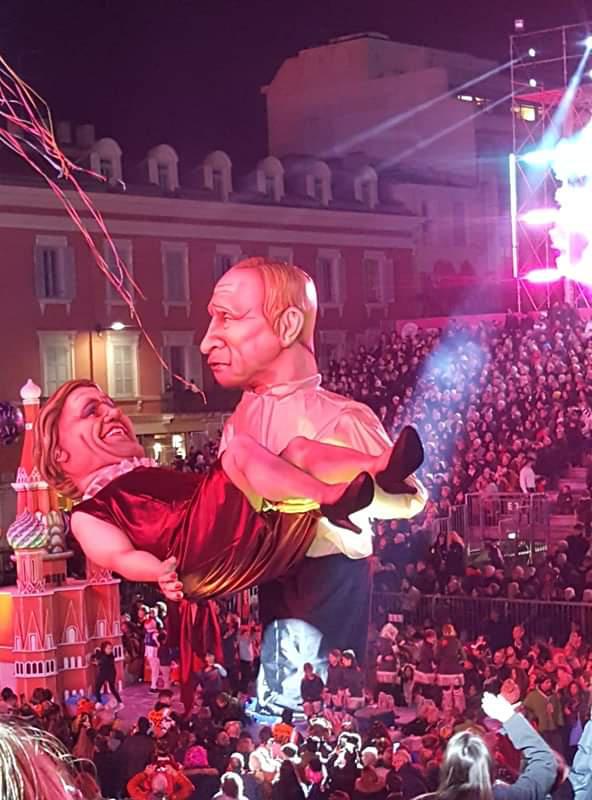 В этом году кукла российского президента Путина появилась на параде в компании куклы французского актера Жерара Депардье, в 2013 году получившего российское гражданство и заявившего о готовности умереть за Россию.