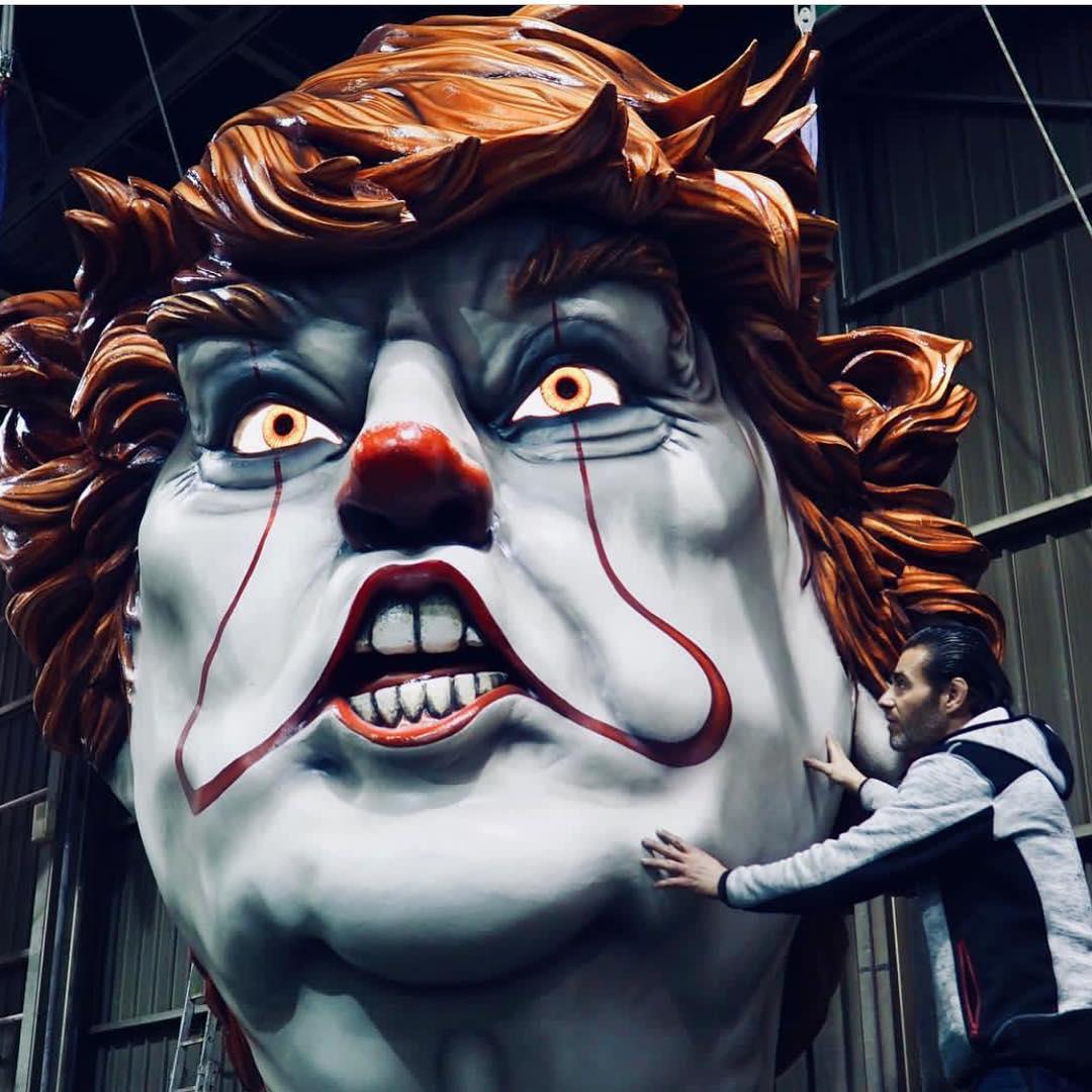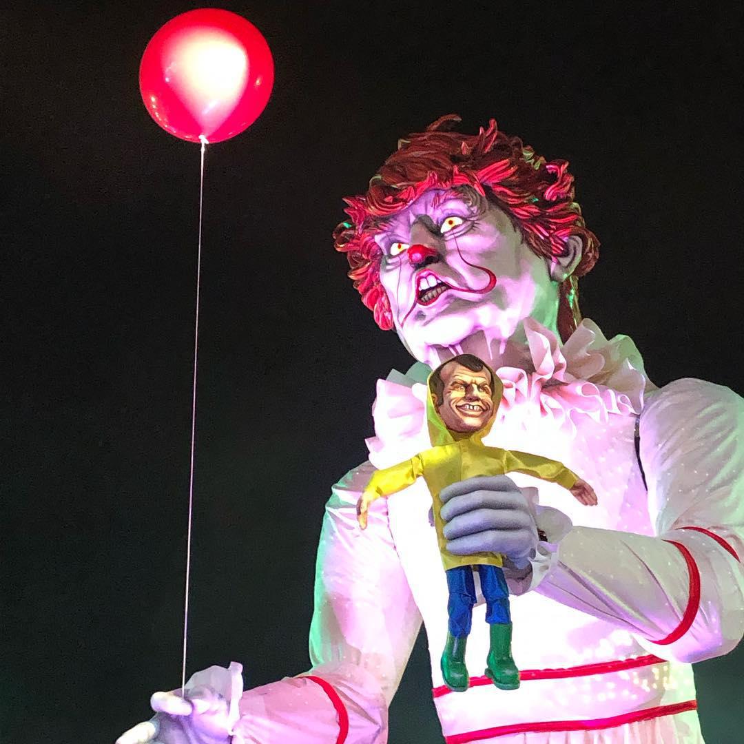 Президент США Дональд Трамп появился на параде в виде огромного злого клоуна, держащего в руках куклу французского президента.