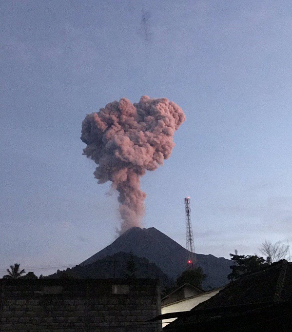 Так, вулкан Мерапи ("Гора огня"), который считается самым активным в этом районе, выпустил столп дыма и пепла вверх на 2000 метров.