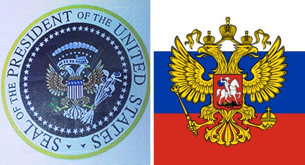 Орел за спиной Трампа отличался от символа страны, установленного еще в 1789 году. Двуглавое пернатое, ненадолго появившееся на экране, очень походило на орла, изображенного на государственном российском флаге.