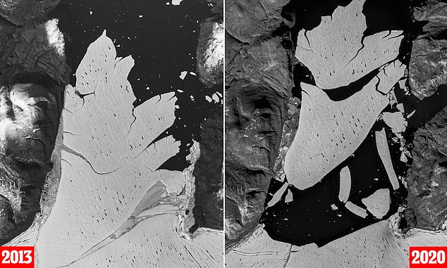 Из-за быстрого изменения климата от крупнейшего из оставшихся арктических шельфовых ледников Гренландии откололся массив льда, площадью около 110 кв. км - больше, чем город Париж.