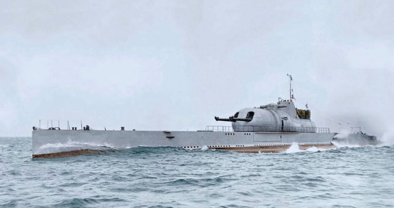 Франция подошла к подводной войне с креативом - конструкция их необычной подводной лодки Surcouf Cruiser заимствована у надводных кораблей. Обтекаемые корпуса производят меньше шума, а впереди боевой рубки стояли две неподвижные 8-дюймовые пушки, которые можно было использовать только для лобовой атаки.