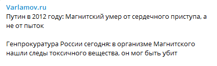 В сети бурно обсуждают заявление Генпрокуратуры РФ о том, что в организме юриста фонда Hermitage Capital Сергея Магнитского, умершего в 2008 году в следственном изоляторе "Матросская тишина", были найдены следы токсичного вещества.