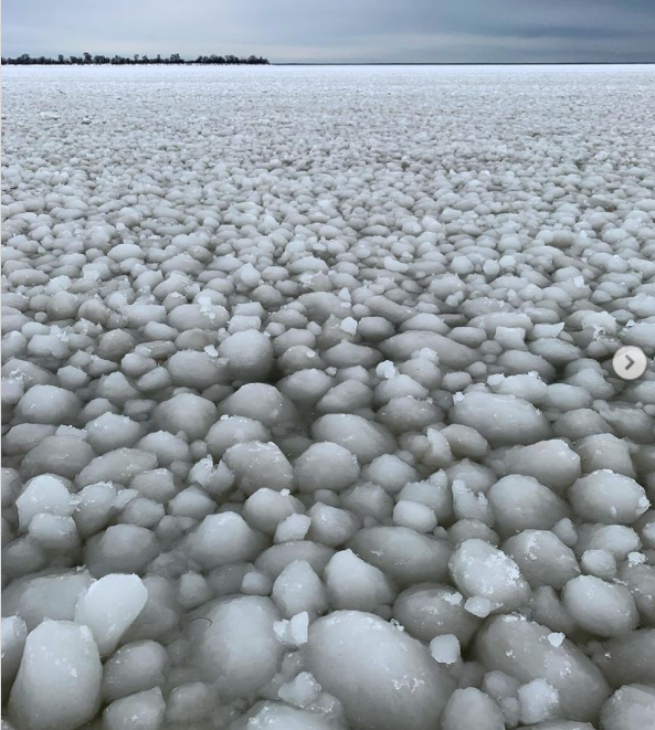 "Вода создала эти ледяные шары, и они просто накапливались у берега, и казалось, что они просто распространились по озеру насколько, насколько я мог увидеть", - прокомментировал очевидец.