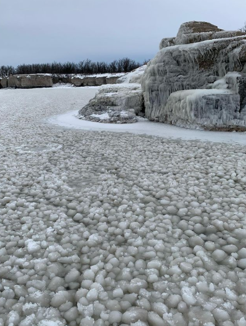 Озеро Манитоба покрылось ледяными шарами. Они появились на поверхности воды из-за редкого природного явления.