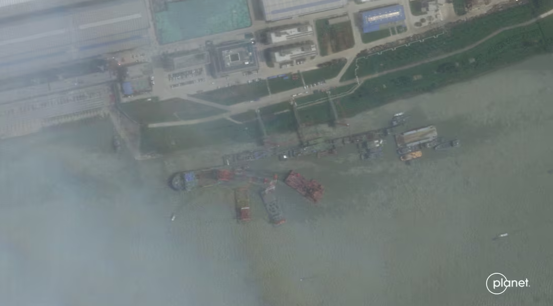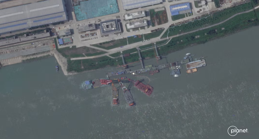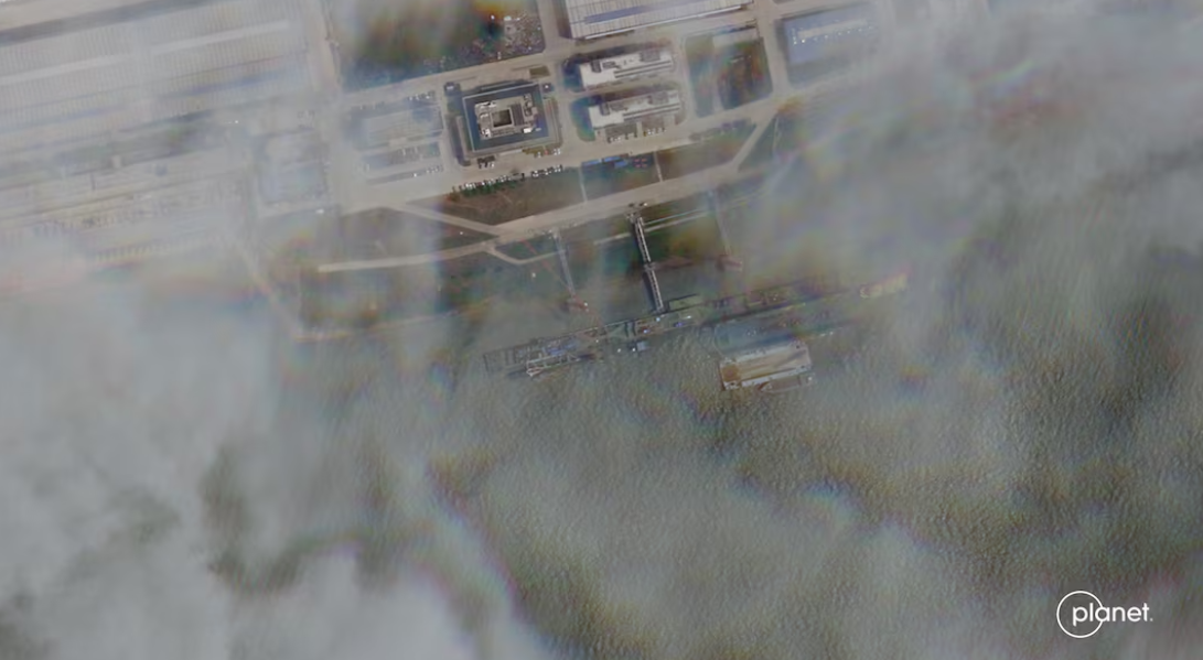 На серии спутниковых снимков от Planet Labs, сделанных в июне, видны краны на верфи в Ухане, где должна была бы быть пришвартована подводная лодка.