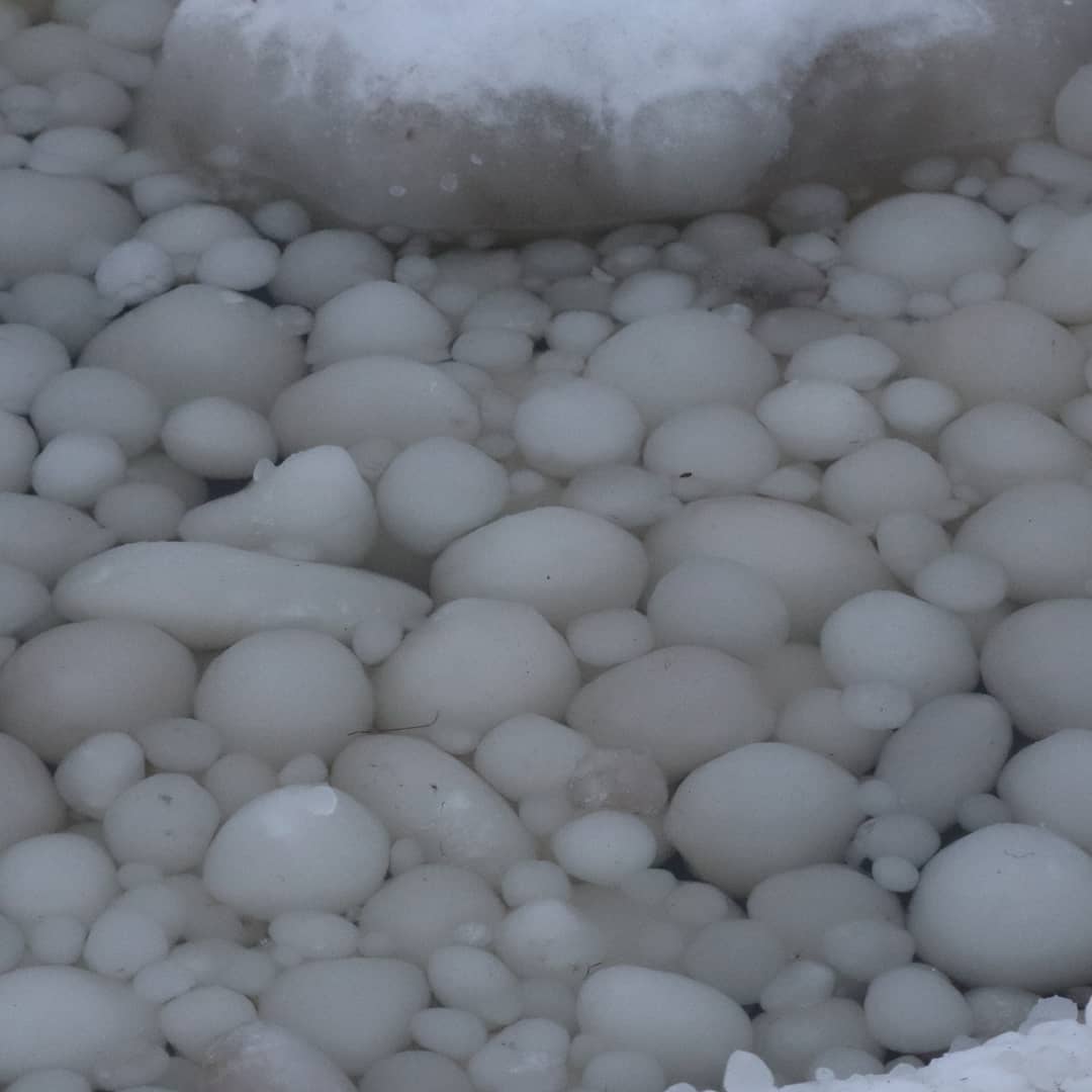 Берег усеян большими ледяными шарами, что можно увидеть крайне редко.