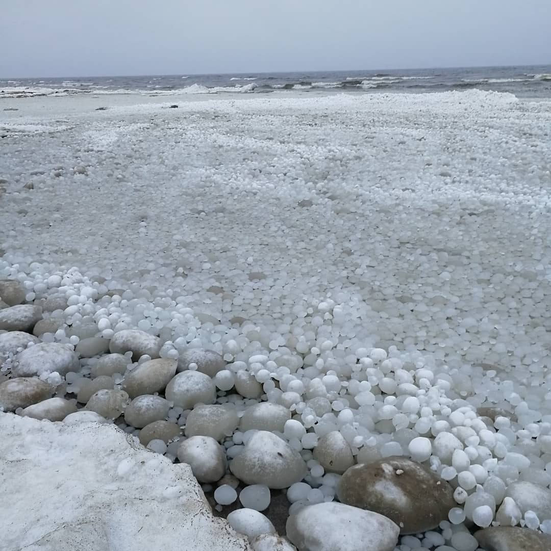 На побережье Финляндии заметили необычное метеорологическое явление в виде ледяных яиц.