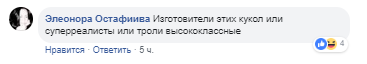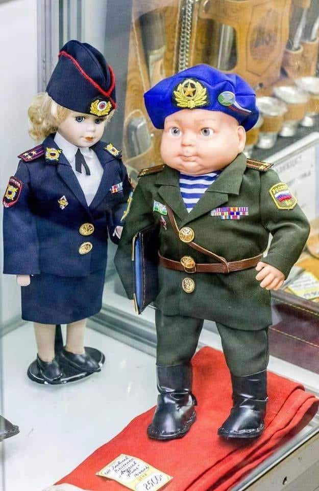 "Поклонская и палковник)))", "Креатива не хватает - цинковый гроб вместо матрешек. Открываешь, а там сепар, еще открываешь - еще сепар, еще открываешь ...)", "Изготовители этих кукол или суперреалисты или троли высококлассные", - пишут комментаторы.