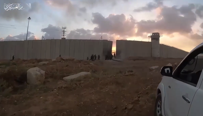 На видео заметно, как группа вооруженных лиц одолевает забор, разграничивающий Сектор Газы и Израиль. Причем на видео вместе с арабским очень четко слышен русский язык. "Прикрывайте", – громко говорит кто-то за кадром.