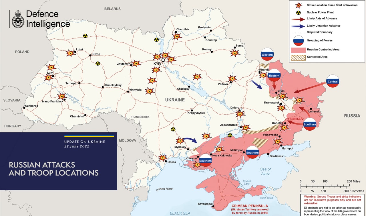 16:49 Минобороны Великобритании опубликовало обновленную карту боевых действий. Украинские войска продолжают сдерживать вторжение российских оккупантов, а на некоторых направлениях ведут наступление.