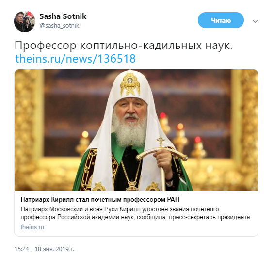 В сети бурно обсуждают присвоение главе Русской православной церкви Кириллу почетного звания профессора Российской академии наук.
