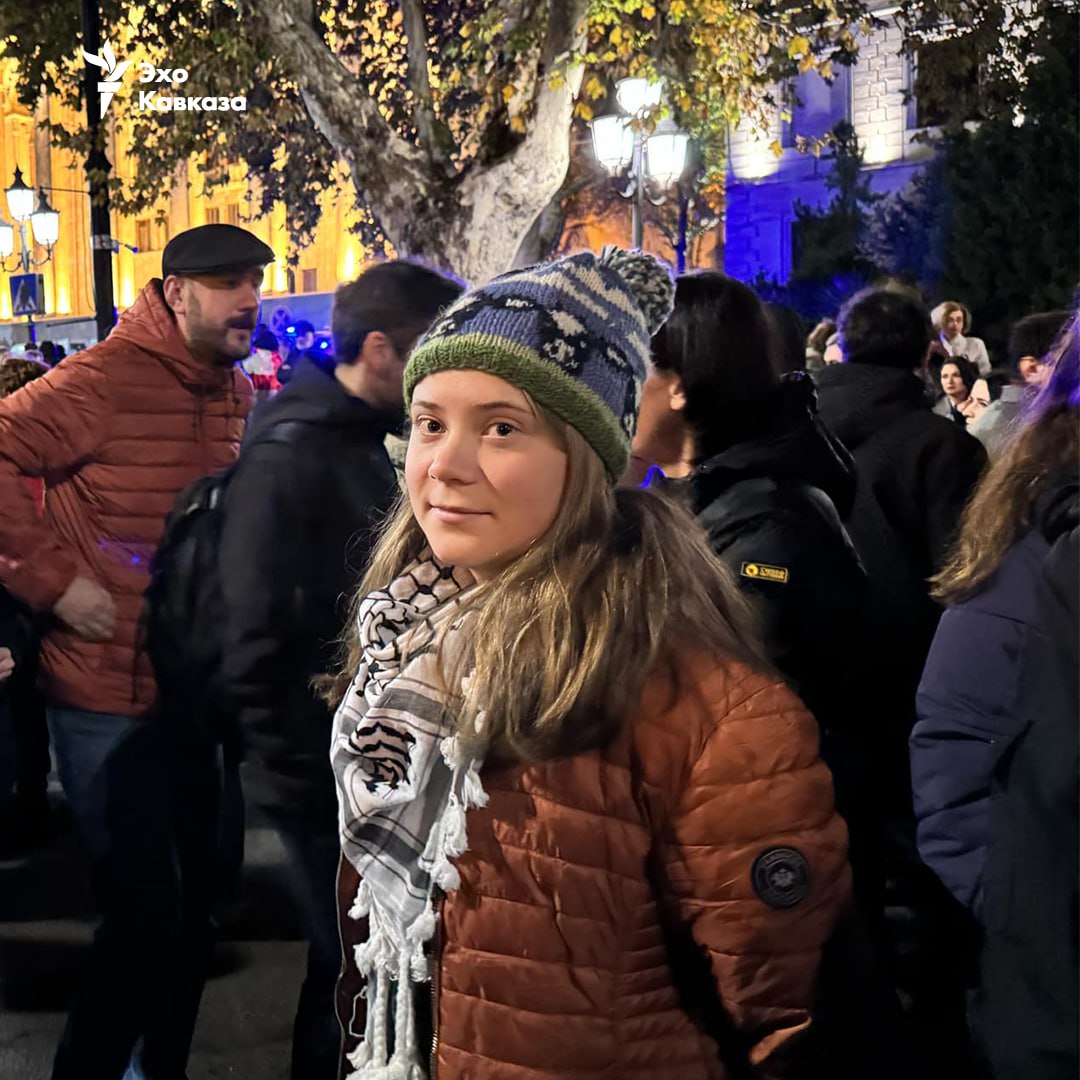 В Тбилиси к очередному многотысячному митингу против фальсифицированной победы "Грузинской мечты" пророссийского олигарха Бидзины Иванишвили лично присоединилась шведская эко-активистка Грета Тунберг.
