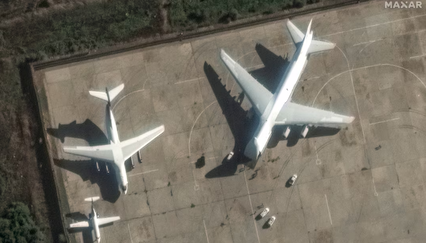 Reuters ссылается на спутниковые снимки, сделанные в пятницу, которые свидетельствуют о том, что Россия грузила военную технику: "... по меньшей мере два Ан-124, одни из крупнейших грузовых самолетов в мире, что, очевидно, готовятся к загрузке".