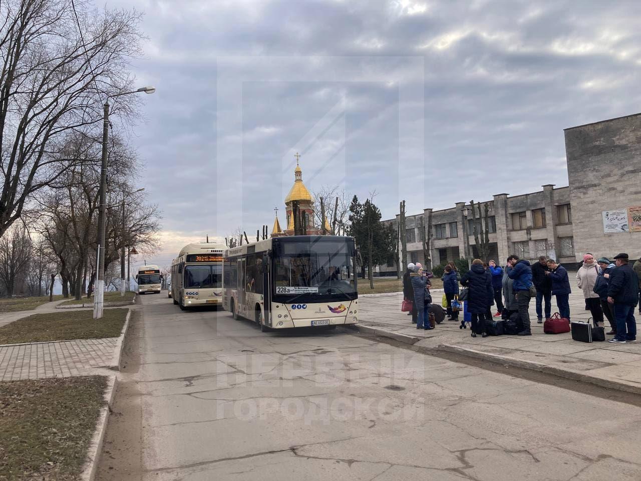 11:24 В Кривом Роге на Макулане стартовала эвакуация из-за угрозы взрывов боеприпасов в танковой части после вражеской диверсии. К Дому офицеров подъехали автобусы, которые для этого специально временно сняли с маршрутов. Люди с чемоданами садятся внутрь.