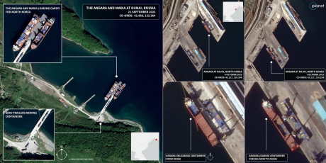 RUSI зафиксировала систематическое движение грузовых судов "Ангара" и "Мария" между Северной Кореей и РФ. Корабли пытались скрыть свое передвижение, выключая транспондеры. Оба судна принадлежат компаниям, связанным с российскими военными логистическими сетями. Начиная с середины августа и по 14 октября эти корабли по меньшей мере пять раз совершили рейсы в обе стороны, перевозя контейнеры между российским портом в поселке Дунай и северокорейским портом Раджин.