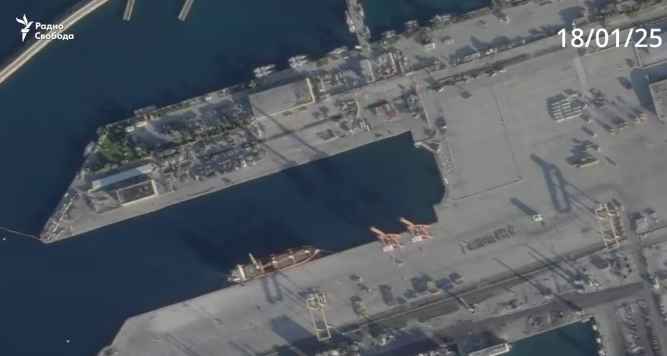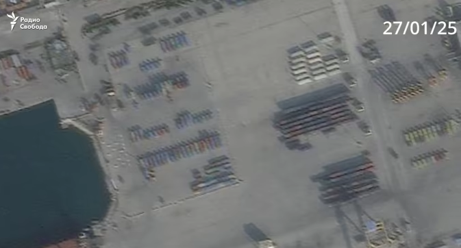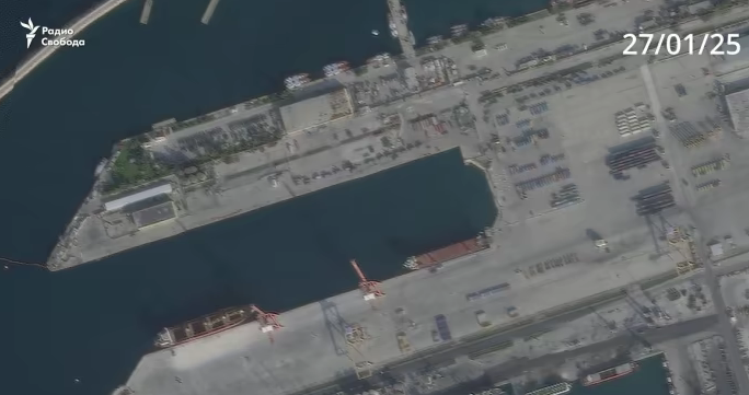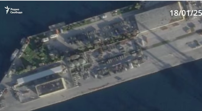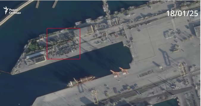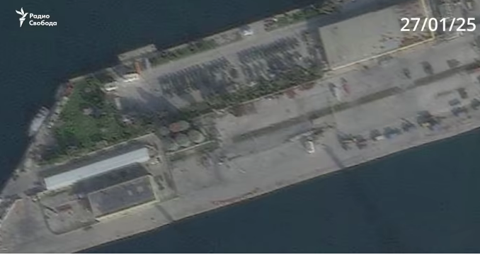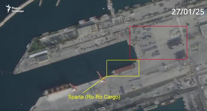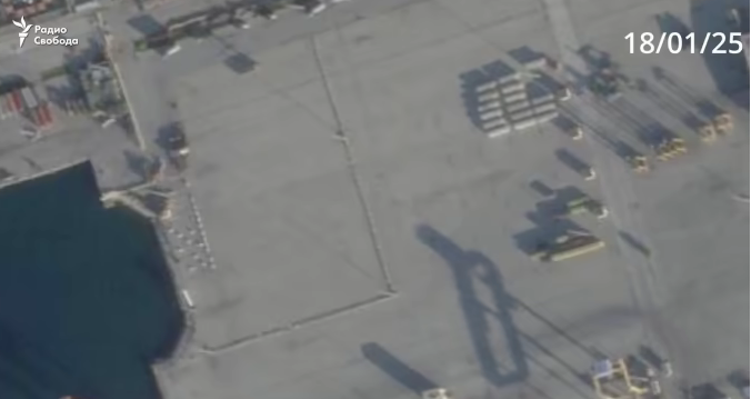 Издание сравнило фото за 18 и 27 января, Sparta II уже покинула порт, а с ней исчезло и большое количество техники.
