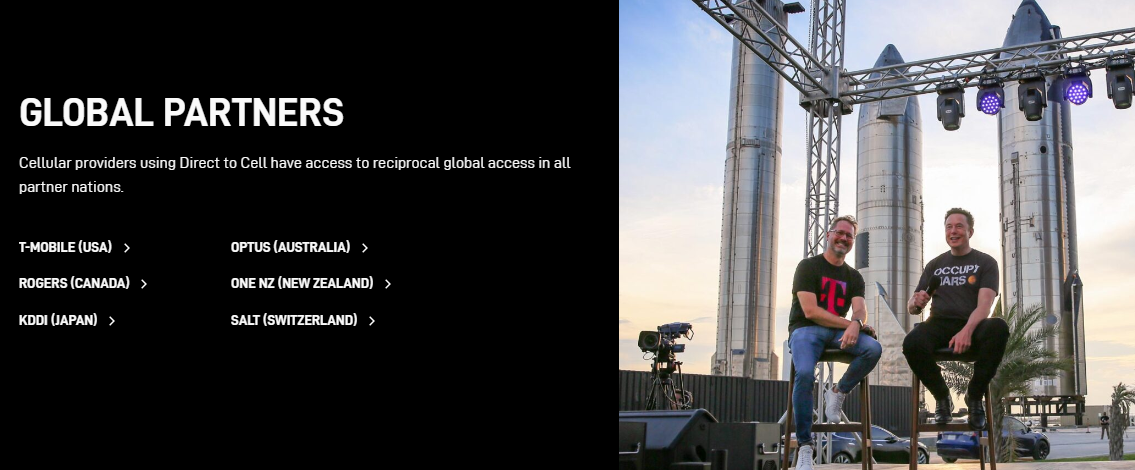 В свои партнеры Илон Маск привлек американскую телекоммуникационную компанию T-MOBILE, австралийскую OPTUS, канадскую ROGERS, новозеландскую ONE NZ, японскую KDDI и швейцарскую SALT.