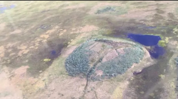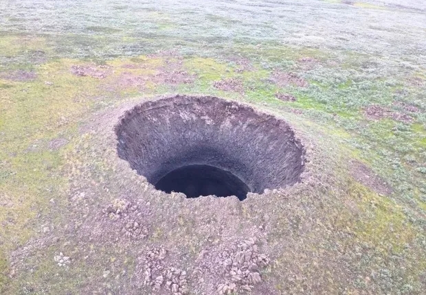 В Ямальской тундре, Россия, ученые обнаружили воронку в 50 м в диаметре, которая была образована из-за взрыва газа под землей.