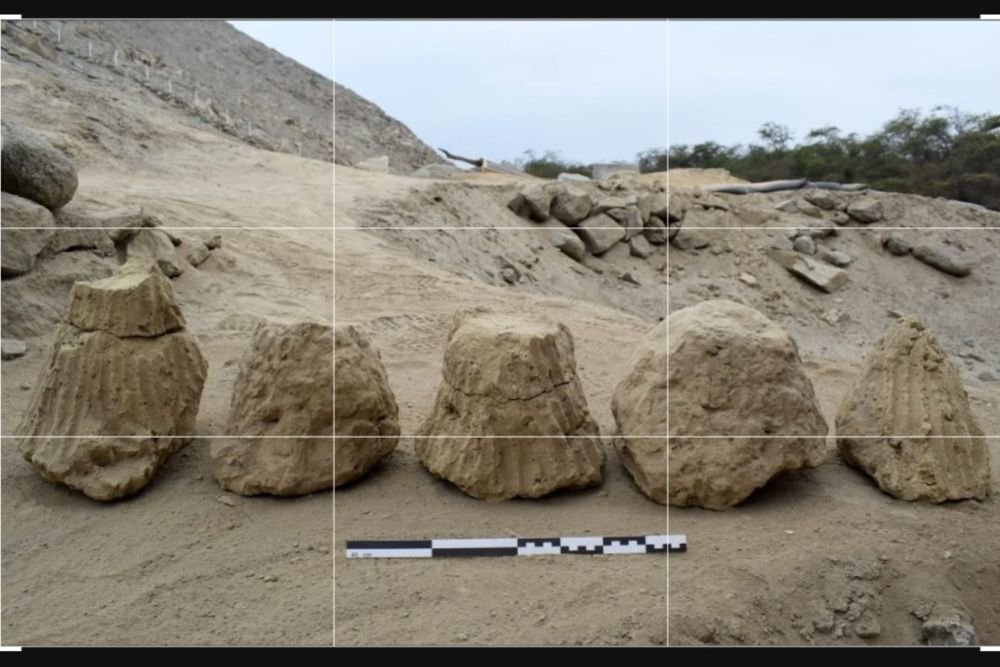 Перуанские исследователи, проводящие раскопки на территории археологического памятника Сечин в провинции Касма, обнаружили пять конических адобов - 4000-летних строительных блоков.