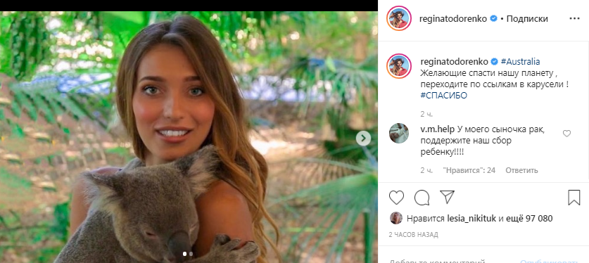 "Из-за апокалиптических пожаров в Австралии погибли почти полмиллиарда животных и сгорело более 14,5 миллиона акров земли - это в 6 раз больше, чем во время пожара в 2019 в Амазонии! Почти 30% коал погибли, потому что медленные животные не в состоянии покинуть пламя... друзья мы можем помочь!", - написала она.