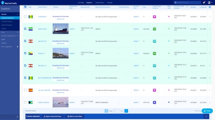 В ресурсе MarineTraffic обнародовали данные, что от взрыва могли пострадать 5 судов. Среди них два украинских.