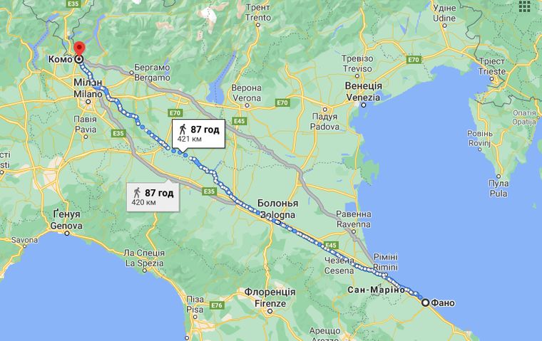 Так, мужчина поссорился со своей женой и решил прогуляться. Он направился с Комо в сторону Болоньи, и через несколько дней был уже в приморском городе Фано, где его задержали за нарушение карантина.
