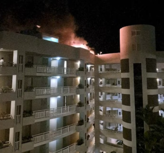 На соответствующих фото заметно, как с крыши отеля поднимается дым и огонь.