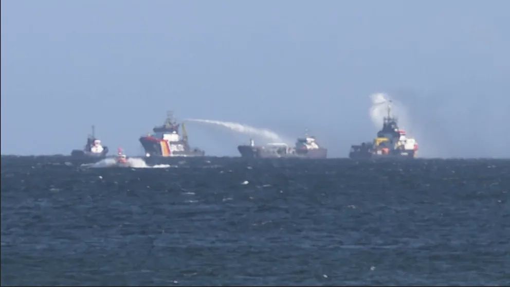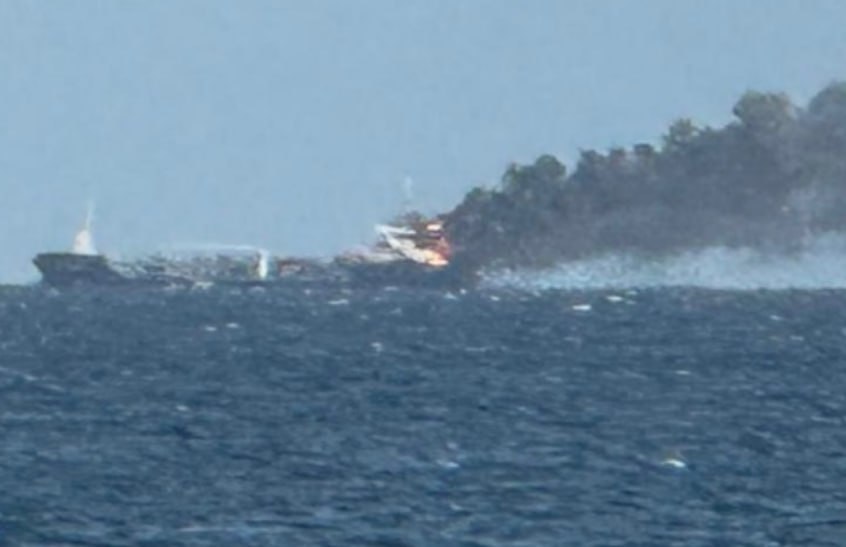 По имеющимся данным, судно перевозило несколько сотен тонн тяжелого мазута. Спасательные крейсеры сейчас пытались потушить пожар на танкере. К операции привлекли также несколько вертолетов.