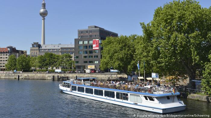 В Берлине четверо людей доставили в больницу с травмами головы после того, как неизвестный помочился с моста на туристический катер.