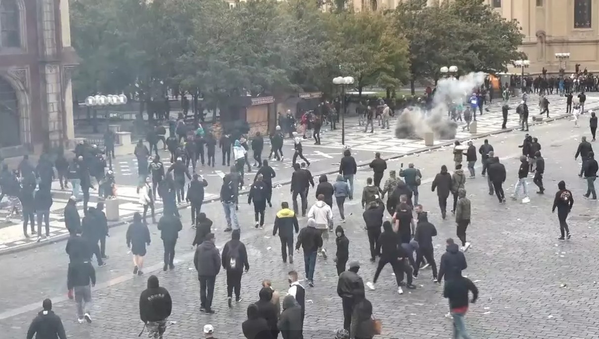 В Праге (Чехия) поклонники спортивных клубов вышли на акцию протеста против мер правительства по поводу пандемии коронавируса.