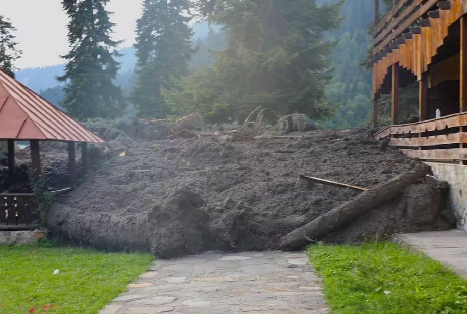 Отмечается, что внезапный оползень произошел вблизи поселка Шови в высокогорном регионе Рача, на территории гостиницы "Сансет Шови".