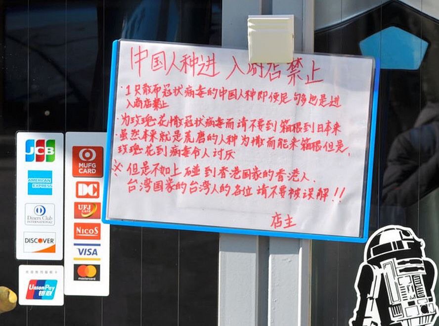 А в Telegram-канале "Протесты в мире" указали, что владельцы кондитерской в Японии запретили обслуживать покупателей из Китая. Они бояться заразиться страшной болезнью. Потому на входе повесили табличку, где написали: "Китайцам вход воспрещен".